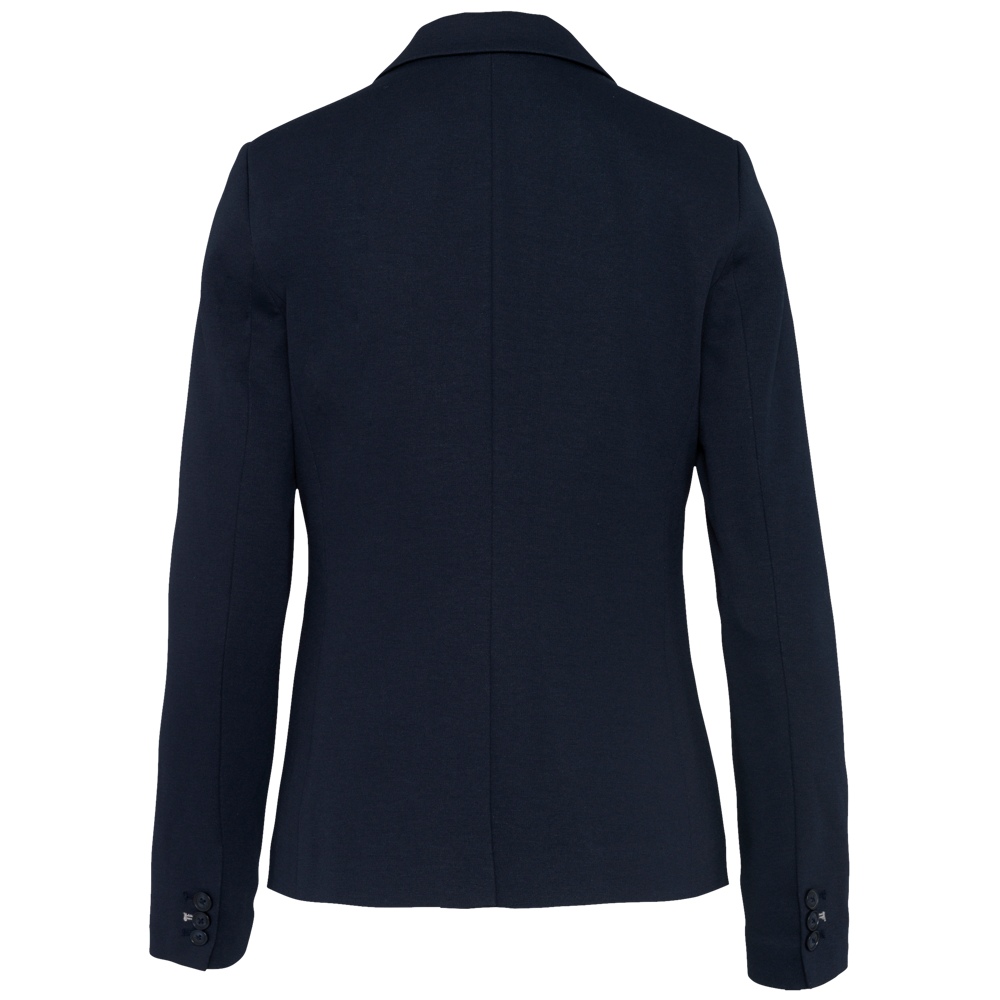 80 % Polyester / 18 % Baumwolle / 2 % Elasthan (Night Navy Heather) – 74 % Polyester / 24 % Viskose / 2 % Elasthan (Light Grey Heather). Interlock-Strick. Rumpffutter aus Baumwollpolyester und Ärmel aus Taftpolyester. Jacke mit 1 Knopf. 2 Paspeltaschen auf der Vorderseite. 1 geknöpfte Innentasche. Kontrastfarbene Paspel auf der Vorderseite innen. Ärmelbündchen mit 3 Knöpfen, davon 1 mit kontrastfarbener Knopfleiste. 1 Schlitz am Rücken. 1 unsichtbarer Reißverschluss innen links zur Veredelung.