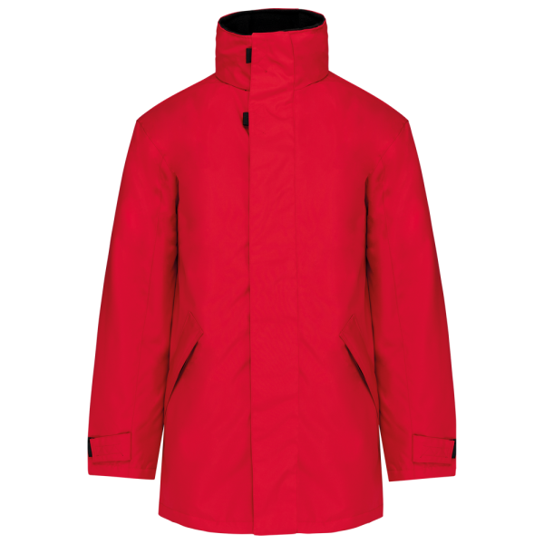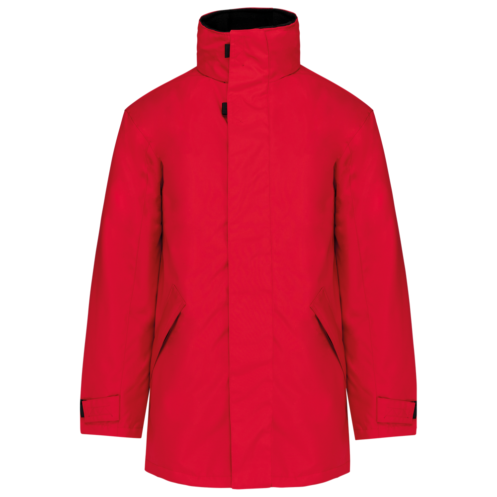 Außenmaterial: 100% Oxford-Polyester. Futter und Wattierung 100% Polyester. Klettverschluss-Kinnschutz, Full Zip mit Windschutzleiste und Klettverschluss. Große Innentasche mit Klettverschluss. Hoch schließender Kragen mit Fleece-Futter und versteckter Kapuze. 2 Reißverschlusstaschen vorne. Innen Handytasche mit Klettverschluss. Ärmelverstellung mittels Klettverschlüssen. Reißverschluss für Veredelungszugang mittels Reißverschluss.