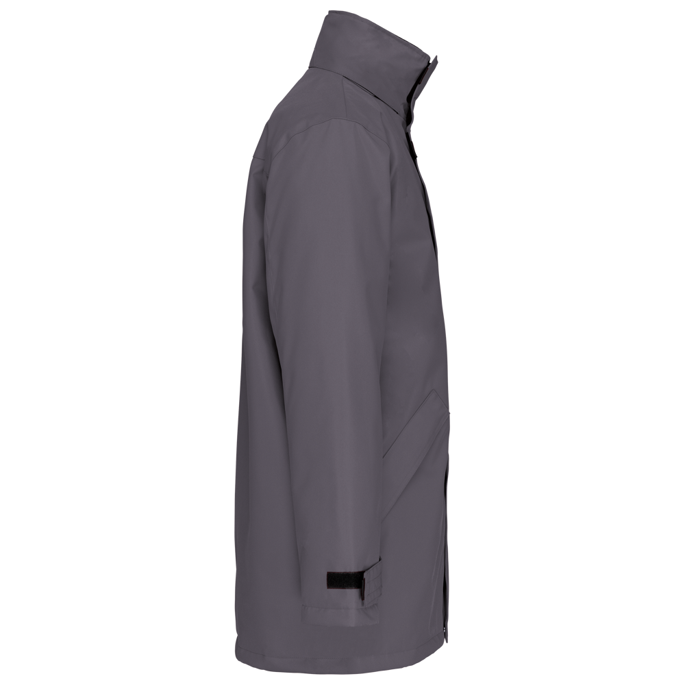 Außenmaterial: 100% Oxford-Polyester. Futter und Wattierung 100% Polyester. Klettverschluss-Kinnschutz, Full Zip mit Windschutzleiste und Klettverschluss. Große Innentasche mit Klettverschluss. Hoch schließender Kragen mit Fleece-Futter und versteckter Kapuze. 2 Reißverschlusstaschen vorne. Innen Handytasche mit Klettverschluss. Ärmelverstellung mittels Klettverschlüssen. Reißverschluss für Veredelungszugang mittels Reißverschluss.