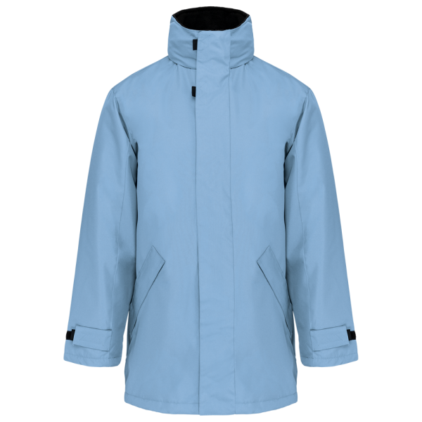 Außenmaterial: 100% Oxford-Polyester. Futter und Wattierung 100% Polyester. Klettverschluss-Kinnschutz, Full Zip mit Windschutzleiste und Klettverschluss. Große Innentasche mit Klettverschluss. Hoch schließender Kragen mit Fleece-Futter und versteckter Kapuze. 2 Reißverschlusstaschen vorne. Innen Handytasche mit Klettverschluss. Ärmelverstellung mittels Klettverschlüssen. Reißverschluss für Veredelungszugang mittels Reißverschluss.