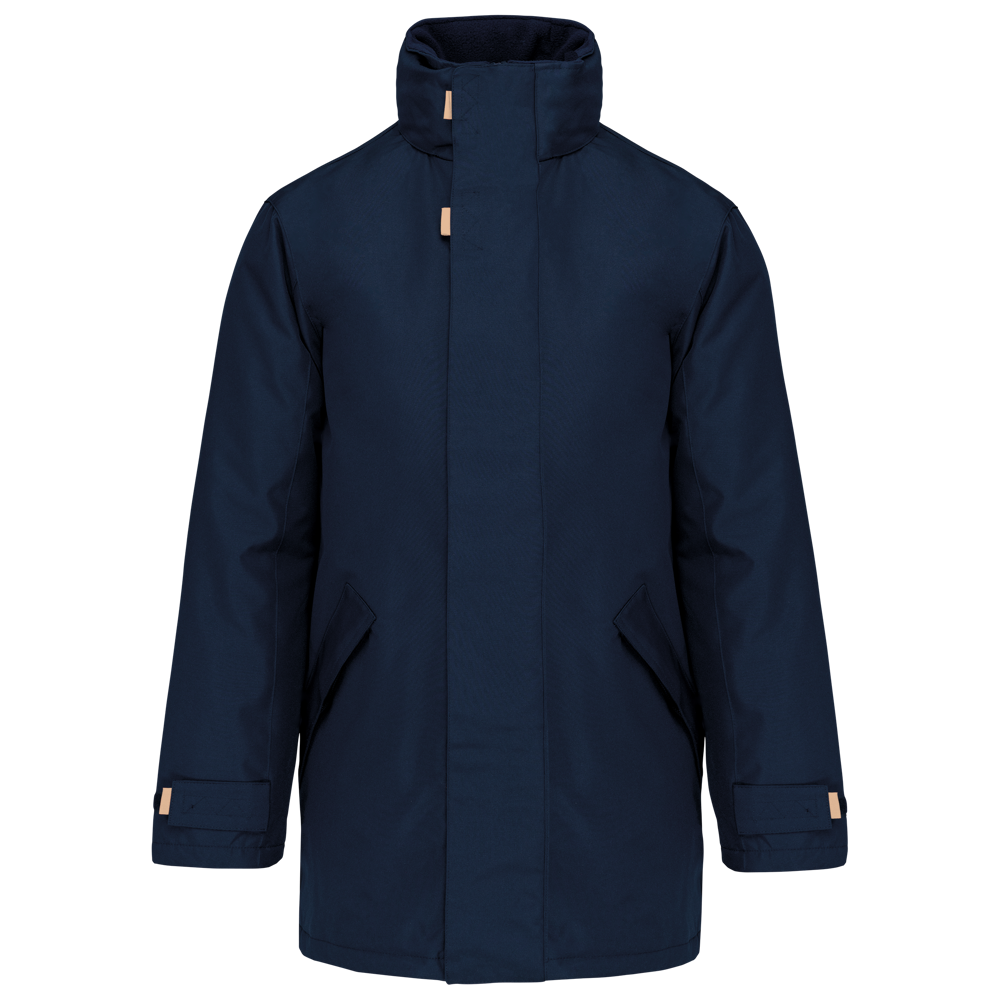 Außenmaterial: 100% Oxford-Polyester. Futter und Wattierung 100% Polyester. Klettverschluss-Kinnschutz, Full Zip mit Windschutzleiste und Klettverschluss. Große Innentasche mit Klettverschluss. Hoch schließender Kragen mit Fleece-Futter und versteckter Kapuze. 2 Reißverschlusstaschen vorne. Innen Handytasche mit Klettverschluss. Ärmelverstellung mittels Klettverschlüssen. Reißverschluss für Veredelungszugang mittels Reißverschluss.