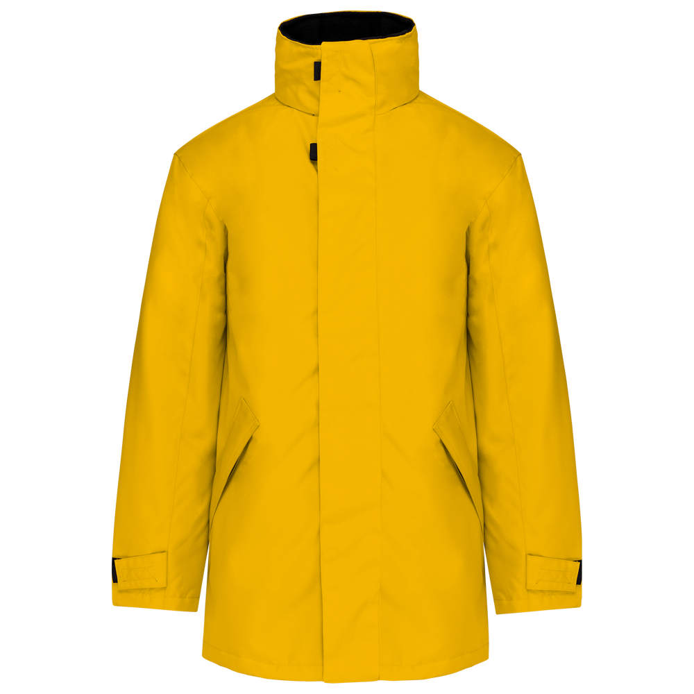 Außenmaterial: 100% Oxford-Polyester. Futter und Wattierung 100% Polyester. Klettverschluss-Kinnschutz, Full Zip mit Windschutzleiste und Klettverschluss. Große Innentasche mit Klettverschluss. Hoch schließender Kragen mit Fleece-Futter und versteckter Kapuze. 2 Reißverschlusstaschen vorne. Innen Handytasche mit Klettverschluss. Ärmelverstellung mittels Klettverschlüssen. Reißverschluss für Veredelungszugang mittels Reißverschluss.