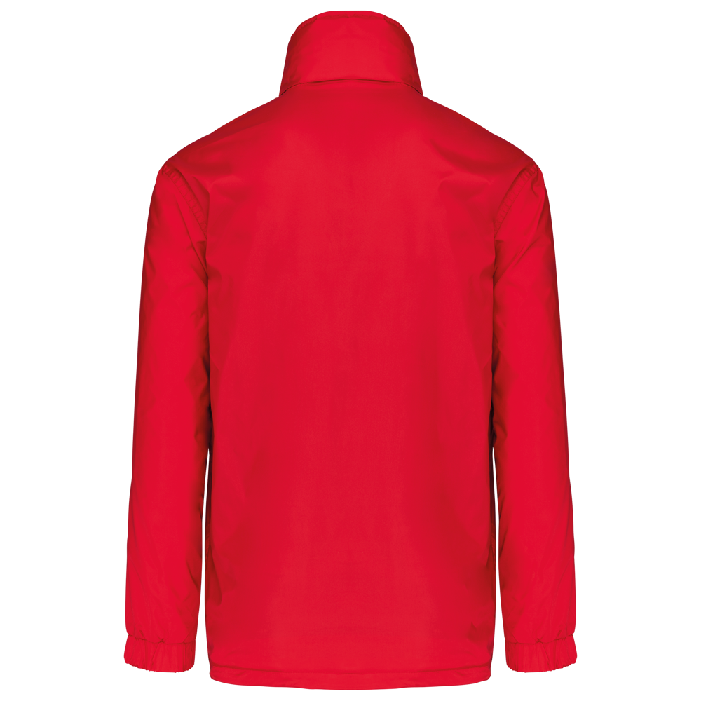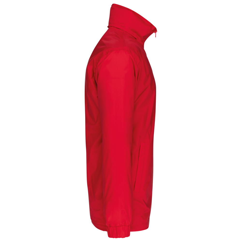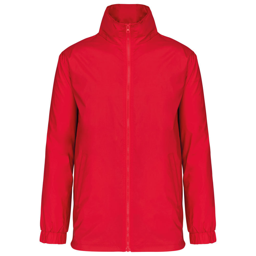 100% Polyamid 210 T mit Acrylbeschichtung innenseitig. Durchgehender Reißverschluss. 1 Innentasche + 2 Seitentaschen mit Klettverschluss. Elastischer Kordelzug mit Stoppern am Bund. Kapuze im Kragen mit Kordelzug.100% Polyester-Jersey. Futter graumeliert. Veredelungszugang an der Innenseite.
