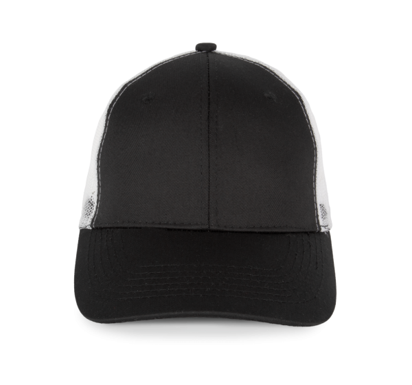 65 % Baumwolle / 35 % Polyester. Trucker-Cap mit 6 Panels, gebogenem Schirm und farblich abgestimmten Einsätzen auf der Vorderseite.