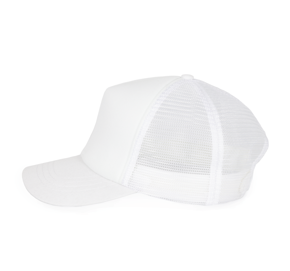 100% Polyester. 5-Panel-Kappe. Mit Schaumstoff-Einsatz zur Personalisierung am Vorderpanel und am Schirm. Größenverstellbar durch Kunststoffschnalle.