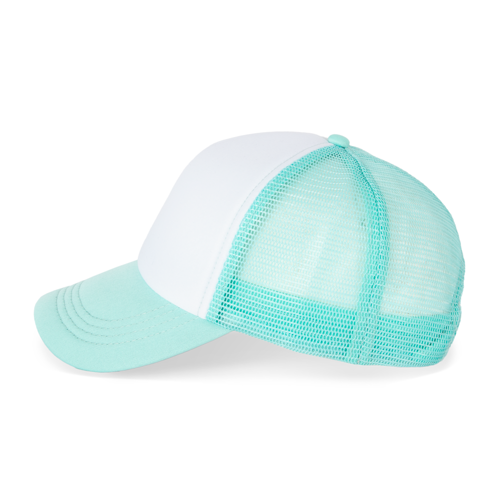 100% Polyester. 5-Panel-Kappe. Mit Schaumstoff-Einsatz zur Personalisierung am Vorderpanel und am Schirm. Größenverstellbar durch Kunststoffschnalle.