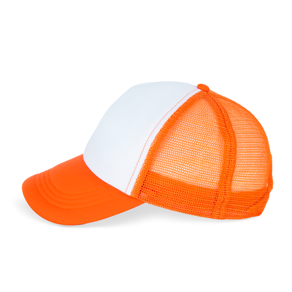 100% Polyester. 5-Panel-Kappe. Mit Schaumstoff-Einsatz zur Personalisierung am Vorderpanel und am Schirm. Größenverstellbar durch Kunststoffschnalle.