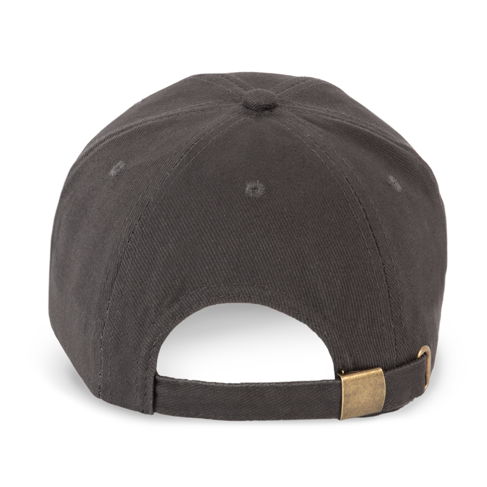 100% grob gebürstetes Baumwolltwill. 6-Panel. Leicht zu bedruckender Schirm. Größenverstellbar durch Metallschnalle.