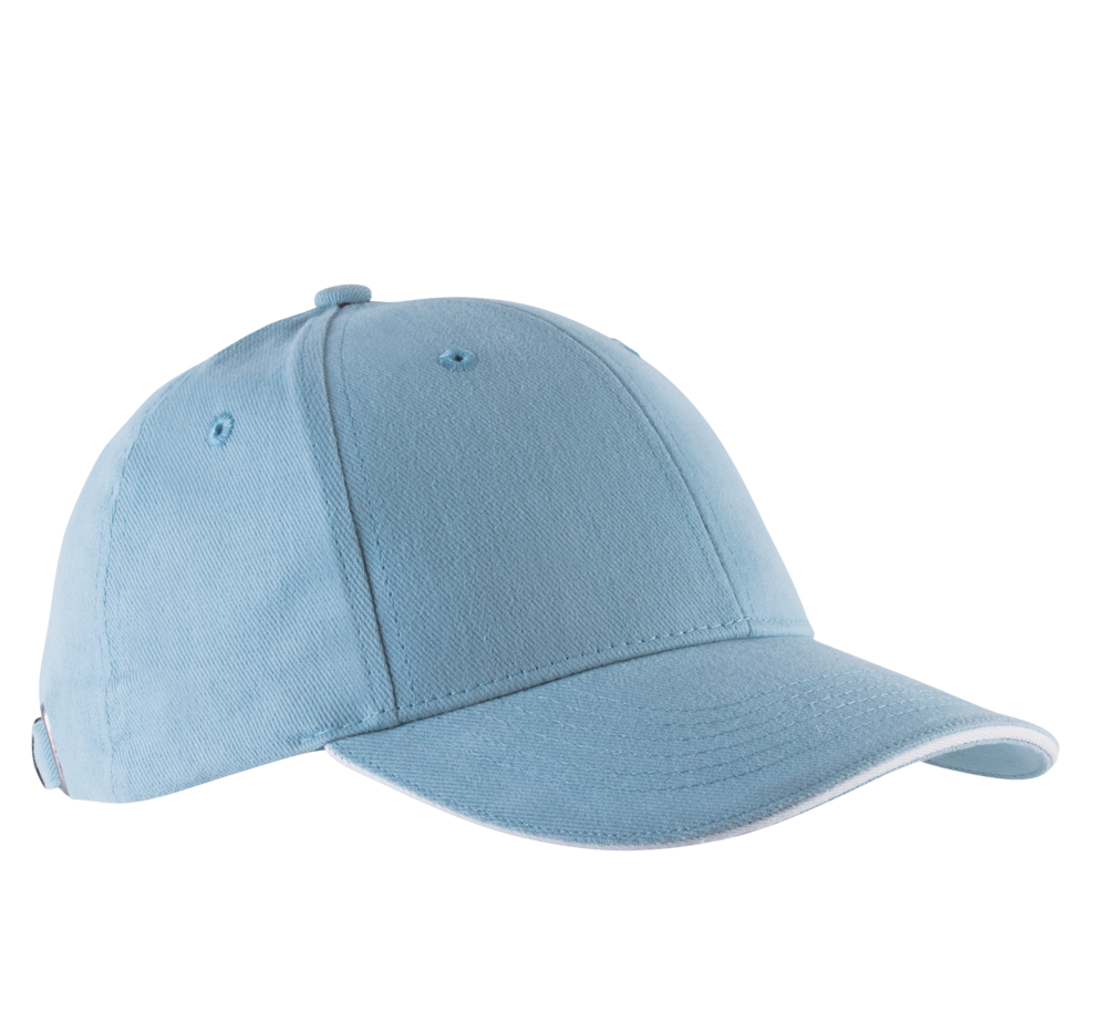 100% stark gebürstete Baumwolle. Schirm mit Kontrastblende. Klemmverschluss. * 3 Farben mit zusätzlicher Kontrastfarbe unter dem Schirm.
