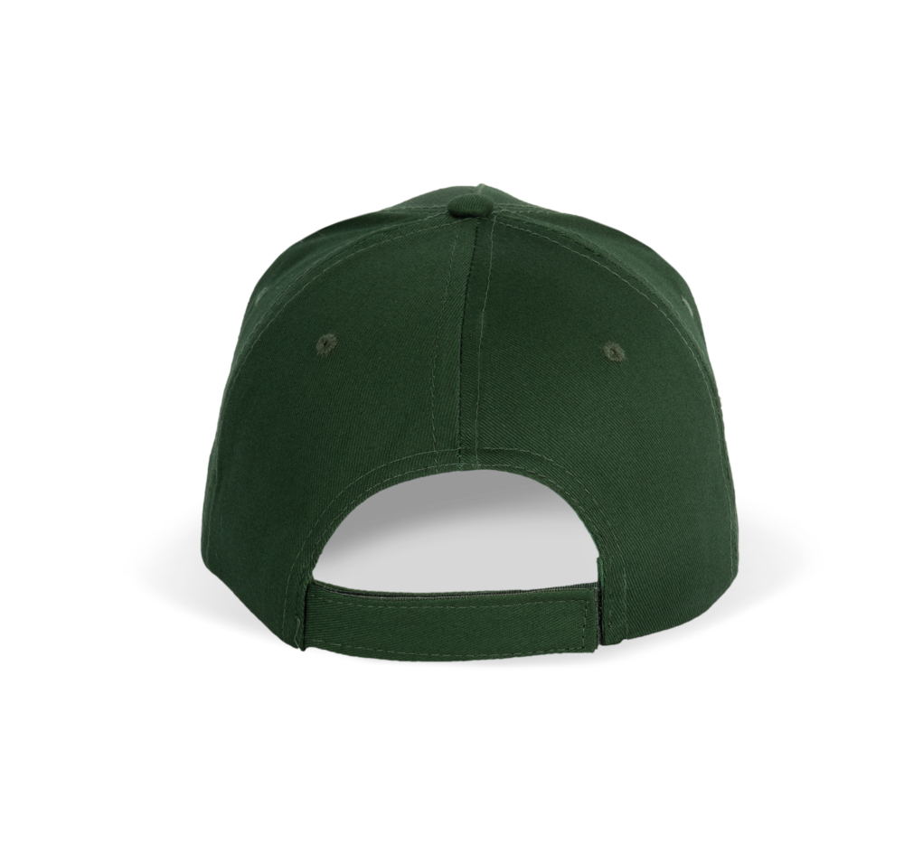100% Baumwolltwill. 5-Panel-Kappe mit Schweißband aus Baumwolle. Größenverstellbar durch Kunststoffverschluss.