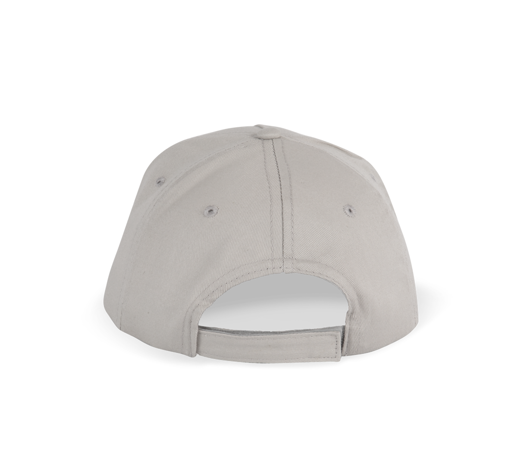 100% Baumwolltwill. 5-Panel-Kappe mit Schweißband aus Baumwolle. Größenverstellbar durch Kunststoffverschluss.