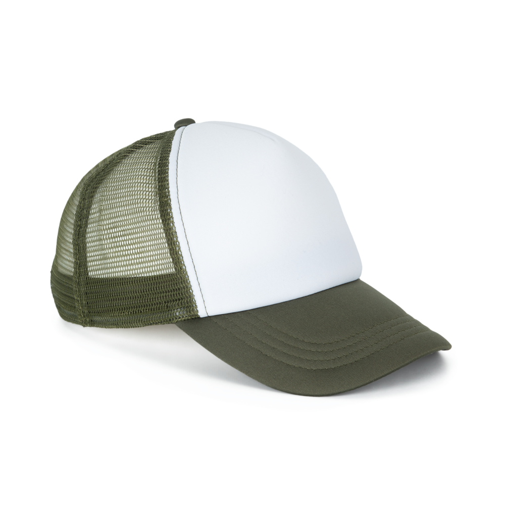 100 % Polyester mit Polyesternetz hinten. 5 Panels. Problemlose Veredelung auf vorderem Panel. Kunststoffschnalle zur Weitenregulierung. Kopfumfang: 53 cm.