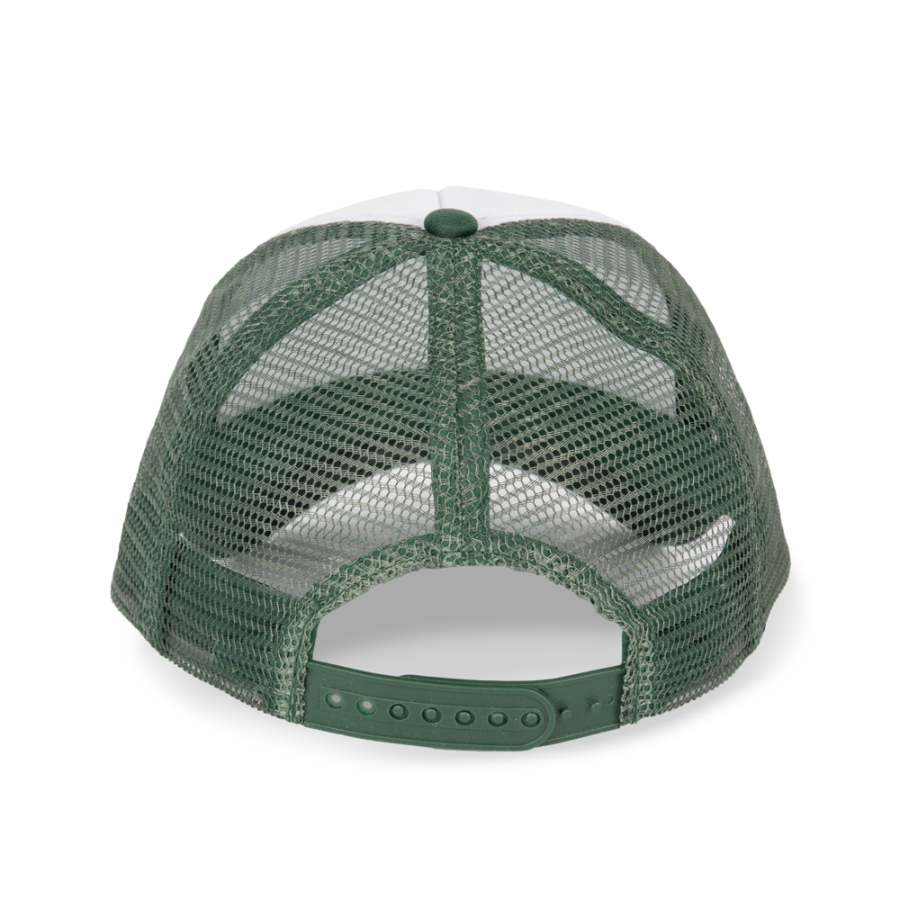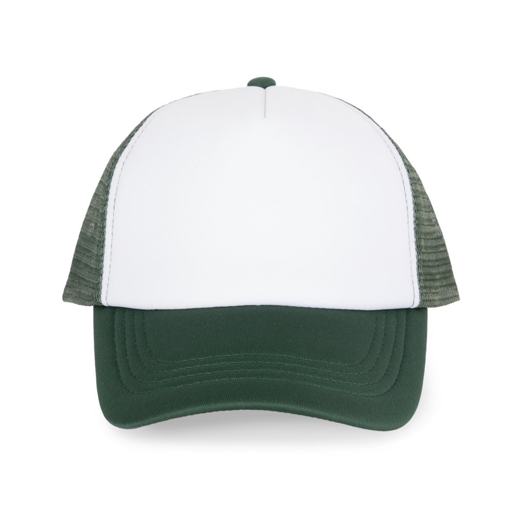 100 % Polyester mit Polyesternetz hinten. 5 Panels. Problemlose Veredelung auf vorderem Panel. Kunststoffschnalle zur Weitenregulierung. Kopfumfang: 53 cm.