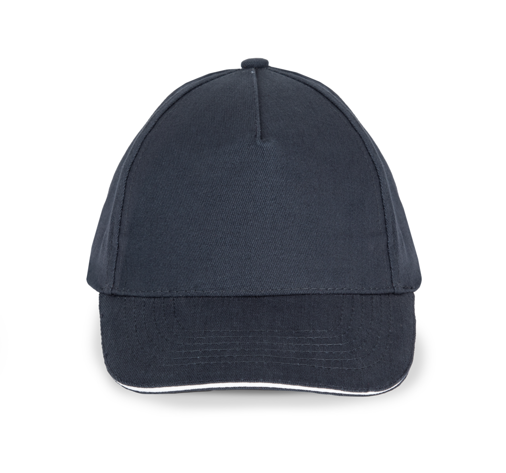 100 % gebürsteter Baumwollserge. 5 Panels. Sandwichschirm in Kontrastfarbe. Weitenverstellbar durch Metallschnalle hinten. Kopfumfang: 53 cm.