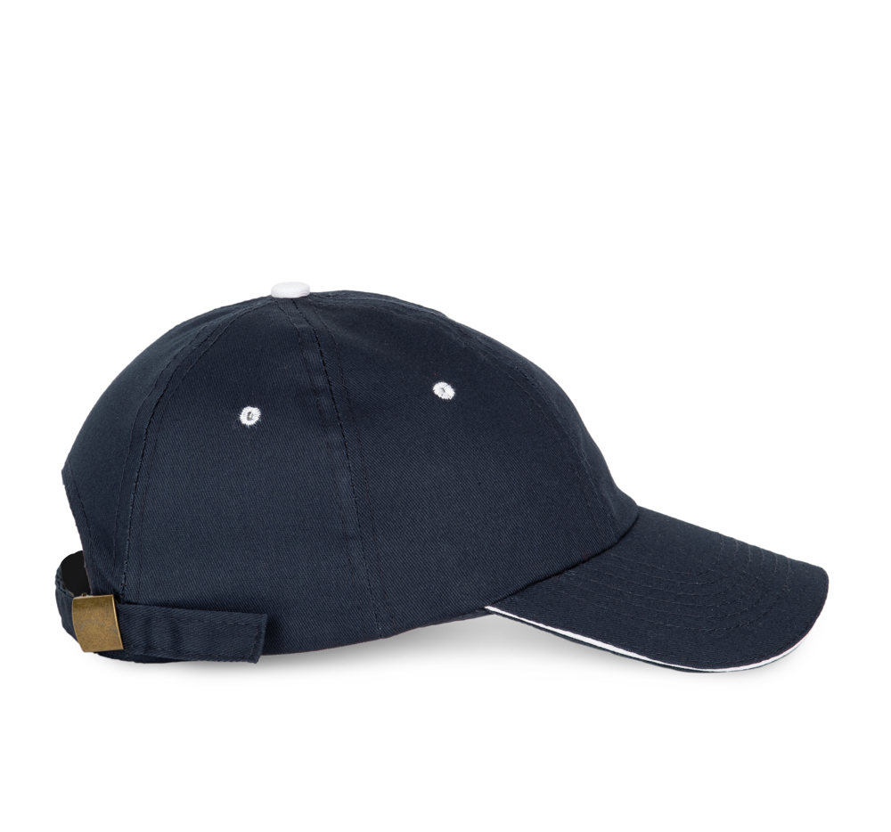100% gebürstetes Baumwolltwill. Ohne Mittelnaht. Schirm mit Kontrastblende. Klemmverschluss.