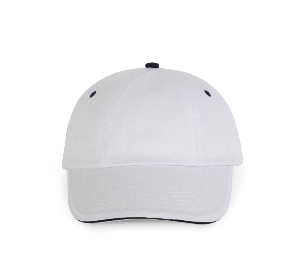 100% gebürstetes Baumwolltwill. Ohne Mittelnaht. Schirm mit Kontrastblende. Klemmverschluss.