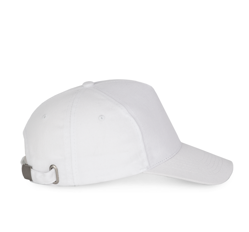 100% gebürstetes Baumwolltwill. Schirm verstärkt und vorgeformt. Verstellbar durch Metallclip hinten.