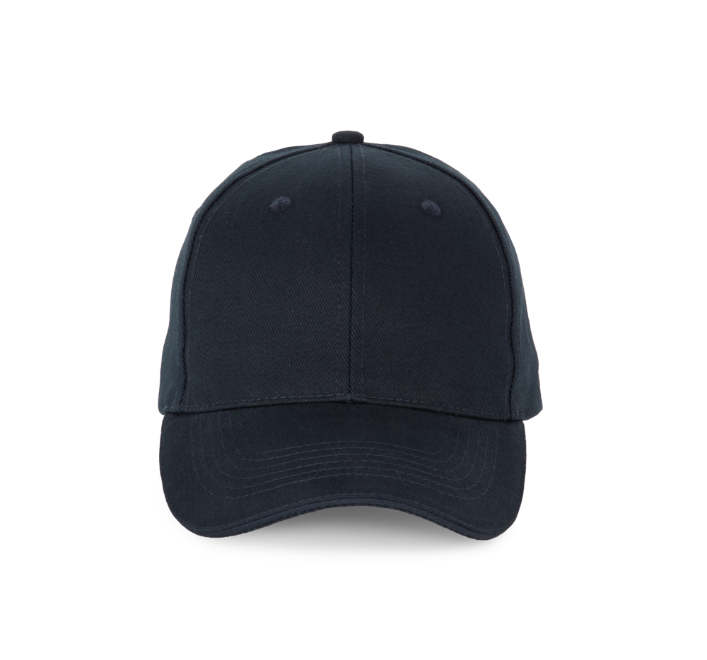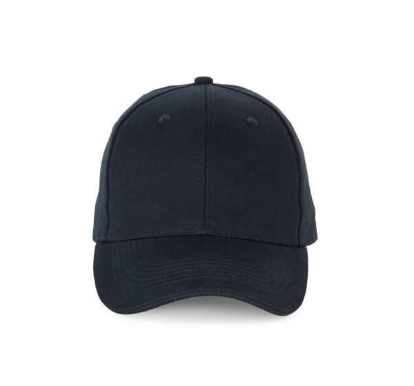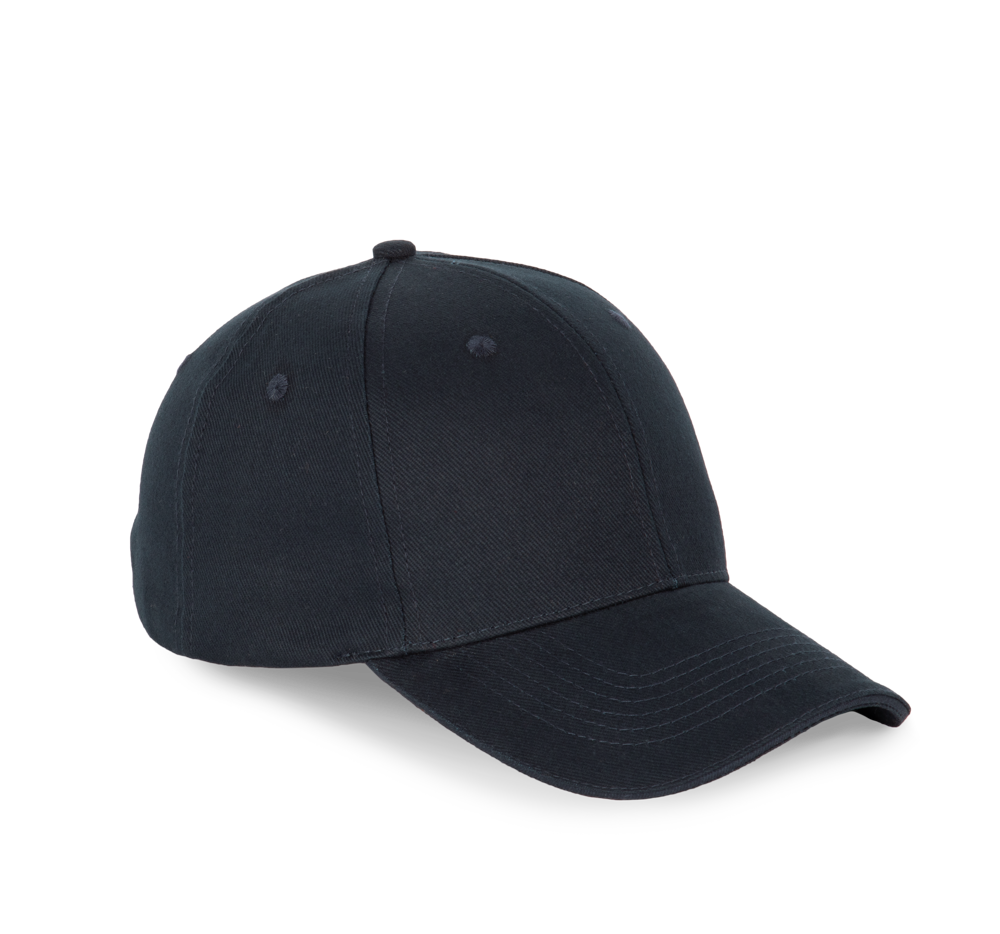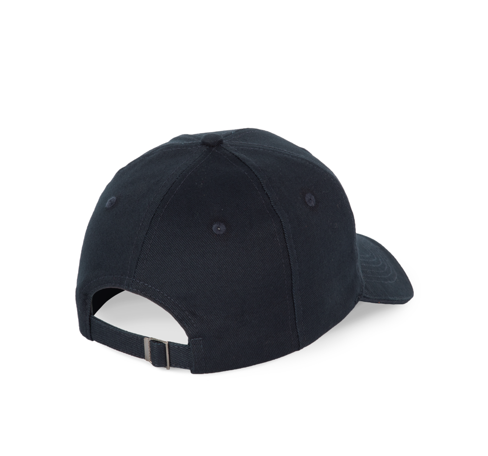 100 % Baumwolle. 6-Panel-Kappe mit Kontrast-Sandwichschirm. Über eine Metallschnalle verstellbarer Verschluss mit Schlaufe mit automatischer Bockierung.