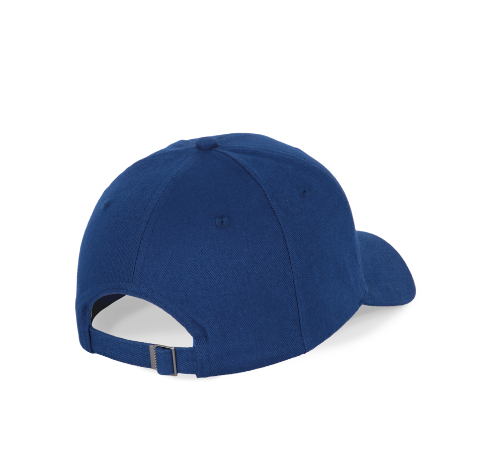 100 % Baumwolle. 6-Panel-Kappe. Über eine Metallschnalle verstellbarer Verschluss mit Schlaufe mit automatischer Bockierung.