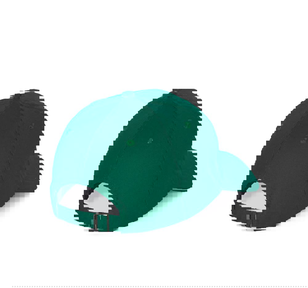100 % Baumwolle. 6-Panel-Kappe. Über eine Metallschnalle verstellbarer Verschluss mit Schlaufe mit automatischer Blockierung.