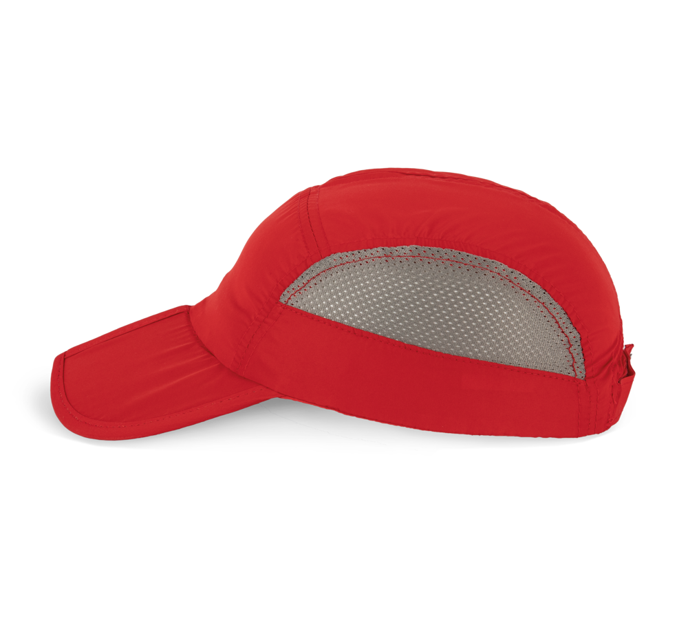 100% Polyester Microfaser. Faltbarer Schirm. 7-Panel-Kappe. Kontrast-Einsätze aus Mesh. Größenverstellung durch Klettverschluss.