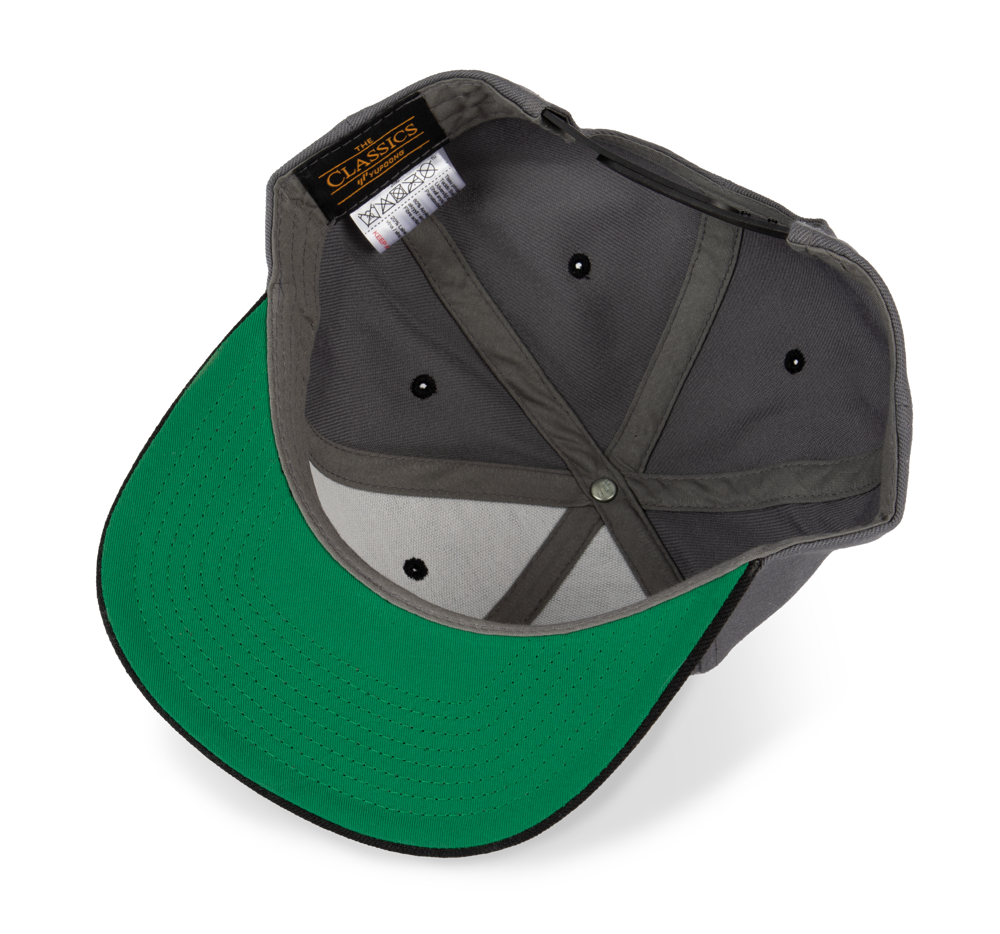 80 % Acryl / 20 % Wolle. 6 Felder. Klassisches Modell, erstklassige Qualität. Flacher Schirm, hohes Profil, vordere Felder versteift. Schirmunterseite in kontrastfarbenem Grün. Kunststoffriegel zur Weitenregulierung.
