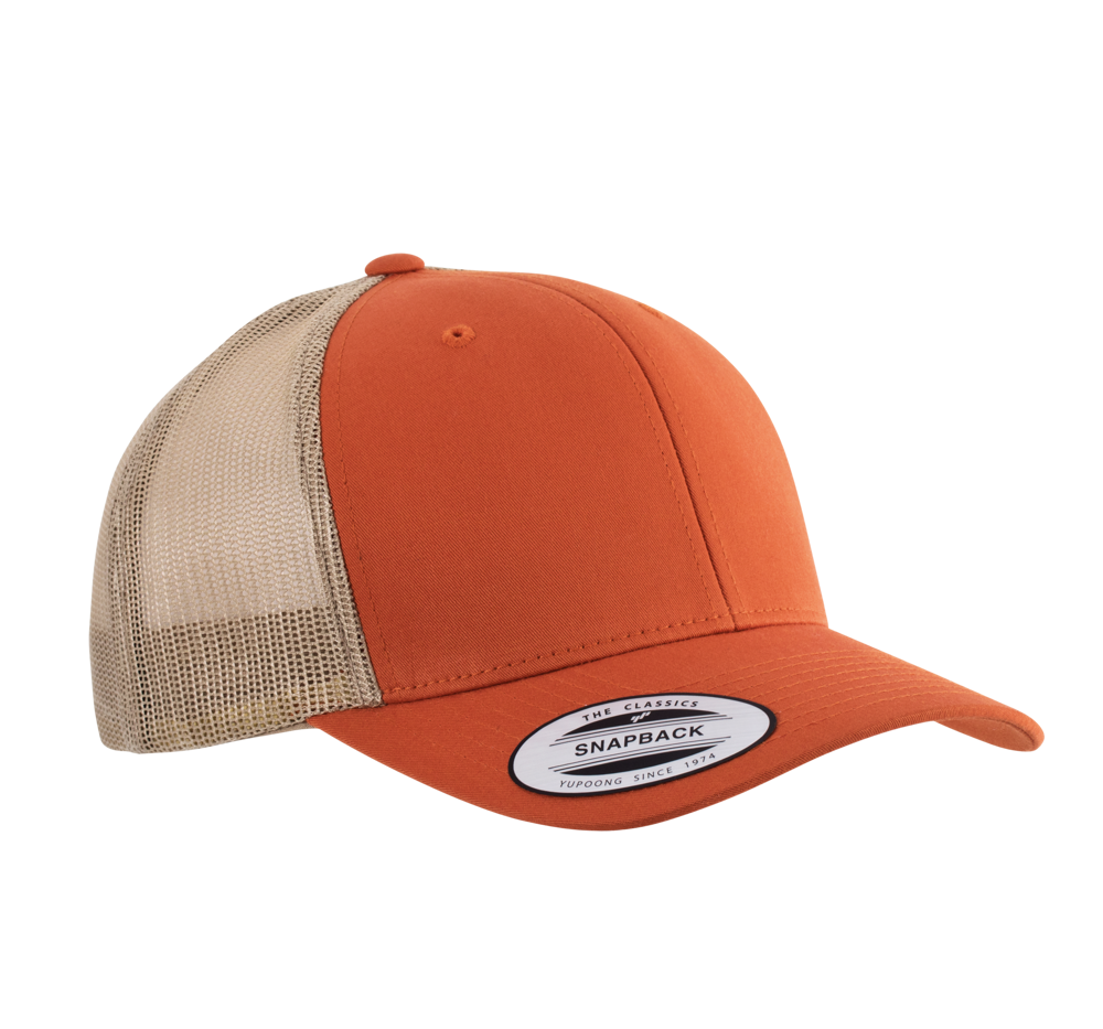 60 % Baumwolle / 40 % Polyester. 6 Panels. Hochwertiges Trucker-Modell im Retro-Stil mit Halbprofilschirm und versteiften, gleichfarbigen vorderen Feldern. Kunststoffriegel zur Weitenregulierung.