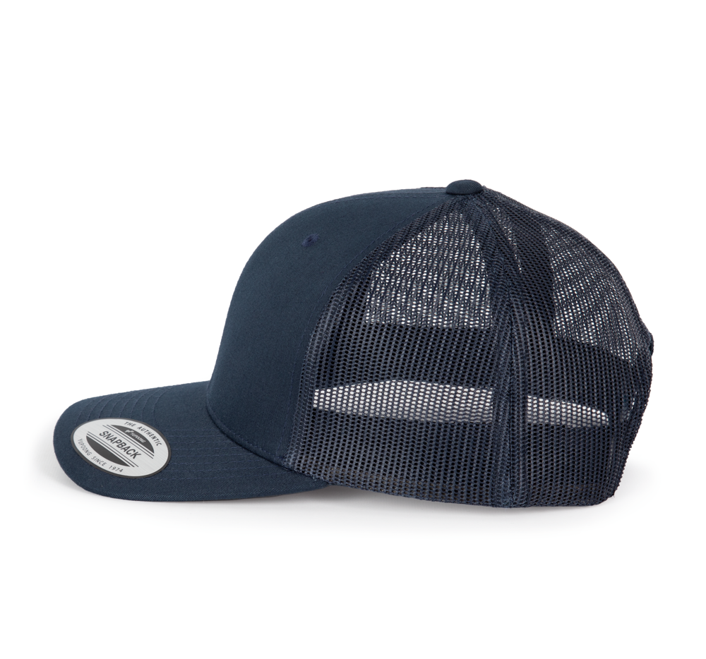 60 % Baumwolle / 40 % Polyester. 6 Panels. Hochwertiges Trucker-Modell im Retro-Stil mit Halbprofilschirm und versteiften, gleichfarbigen vorderen Feldern. Kunststoffriegel zur Weitenregulierung.