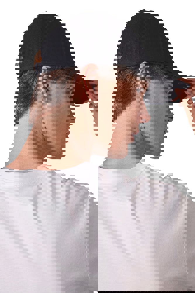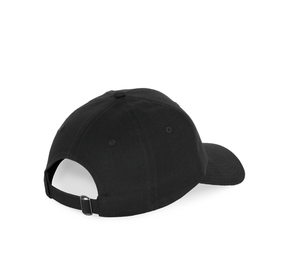 100 % Baumwolle. 6-Panel-Kappe aus 60 % recycelter Baumwolle pré-consumer und 40 % reiner Baumwolle. Verstellschlaufe aus Metall auf der Rückseite der Kappe.