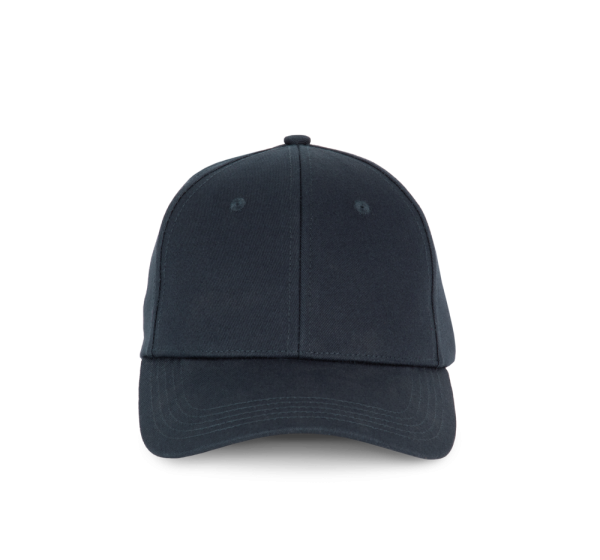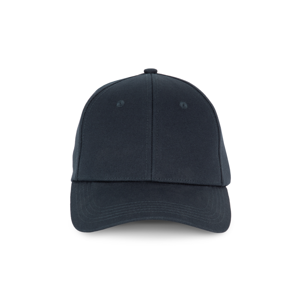 100 % Baumwolle. 6-Panel-Kappe aus 60 % recycelter Baumwolle pré-consumer und 40 % reiner Baumwolle. Verstellschlaufe aus Metall auf der Rückseite der Kappe.