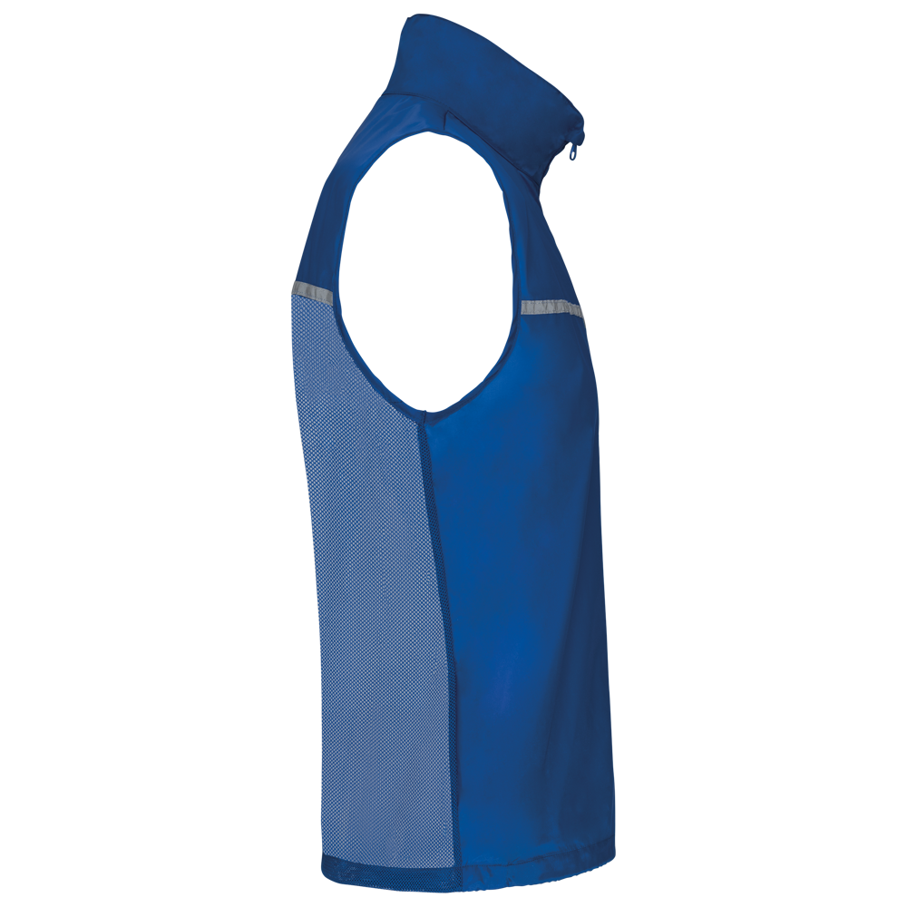 Winddicht aus 100% Polyamid. Rückenteil aus Netzstoff. Elastischer Kordelzug mit Stoppern am Bund. Reflektorstreifen vorne und hinten. Mehrzweck-Innentasche. Abmessung 9,5x11 cm.