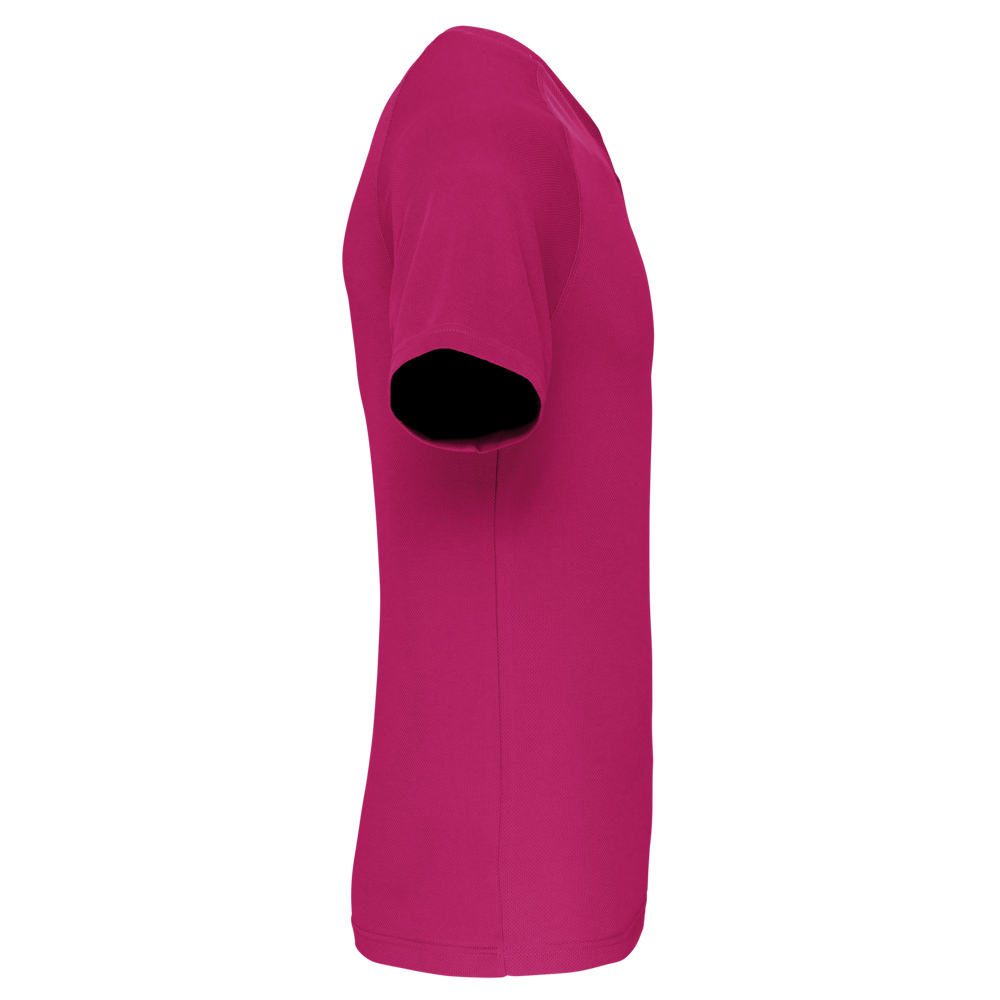 100 % Polyester. Schnelltrocknendes Gewebe. V-Ausschnitt mit Nackenband. Raglanärmel mit Decknähten. Doppelnähte an Ärmelbündchen und Saum.