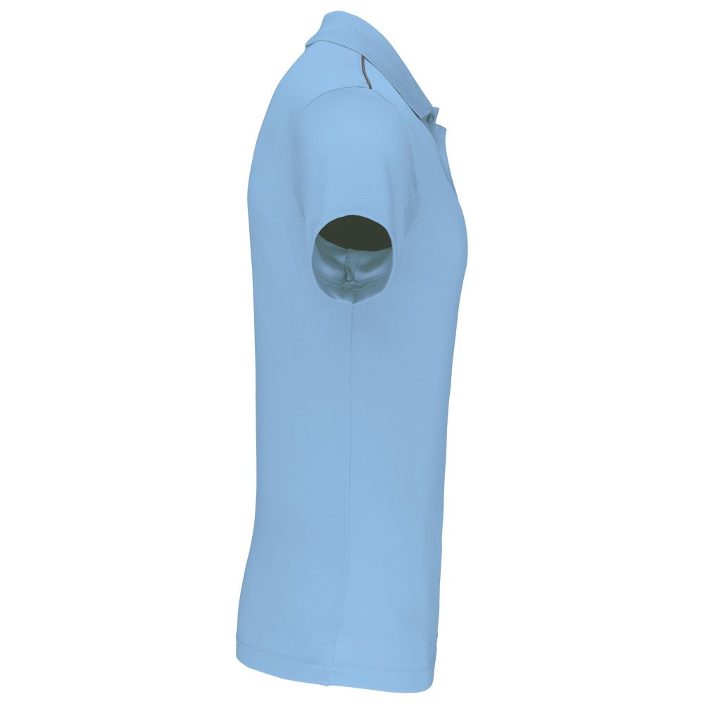 100% Polyester-Interlock. Atmungsaktiv und saugfähig. Rippstrickkragen. 3-Knopf-Leiste. Nackenband in Kontrastfarbe im Kragen und an den Seitenschlitzen. Kontrastpaspelierung an den Schultern. Doppelnaht an Hüfte und Ärmeln.