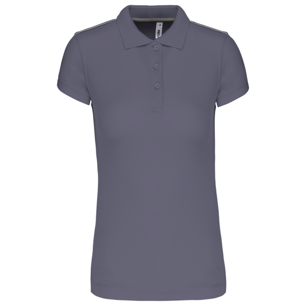100% Polyester-Interlock Quick Dry ®. Rippstrickkragen. 3-Knopf-Leiste. Nackenband in Kontrastfarbe im Kragen und an den Seitenschlitzen. Kontrastpaspelierung an den Schultern. Doppelnaht an Hüfte und Ärmeln.