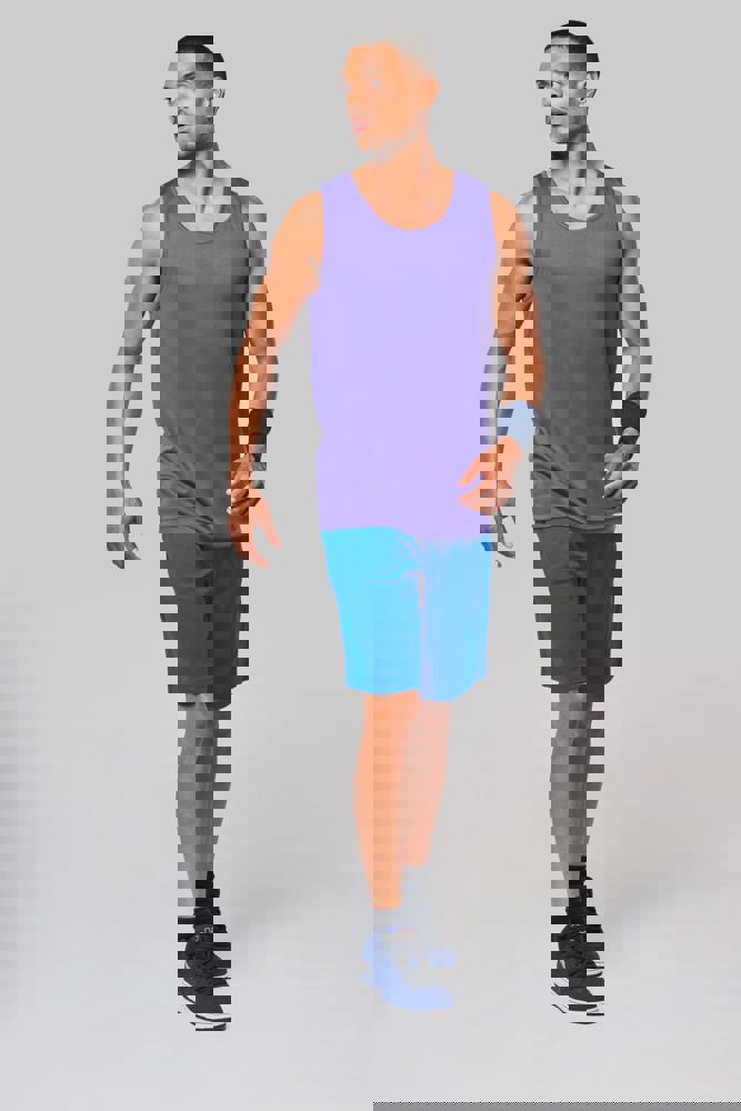100% Polyester. Leichtes und schnelltrocknendes Gewebe. Einfassung an Hals und Armausschnitt. Doppelnahtverarbeitung.