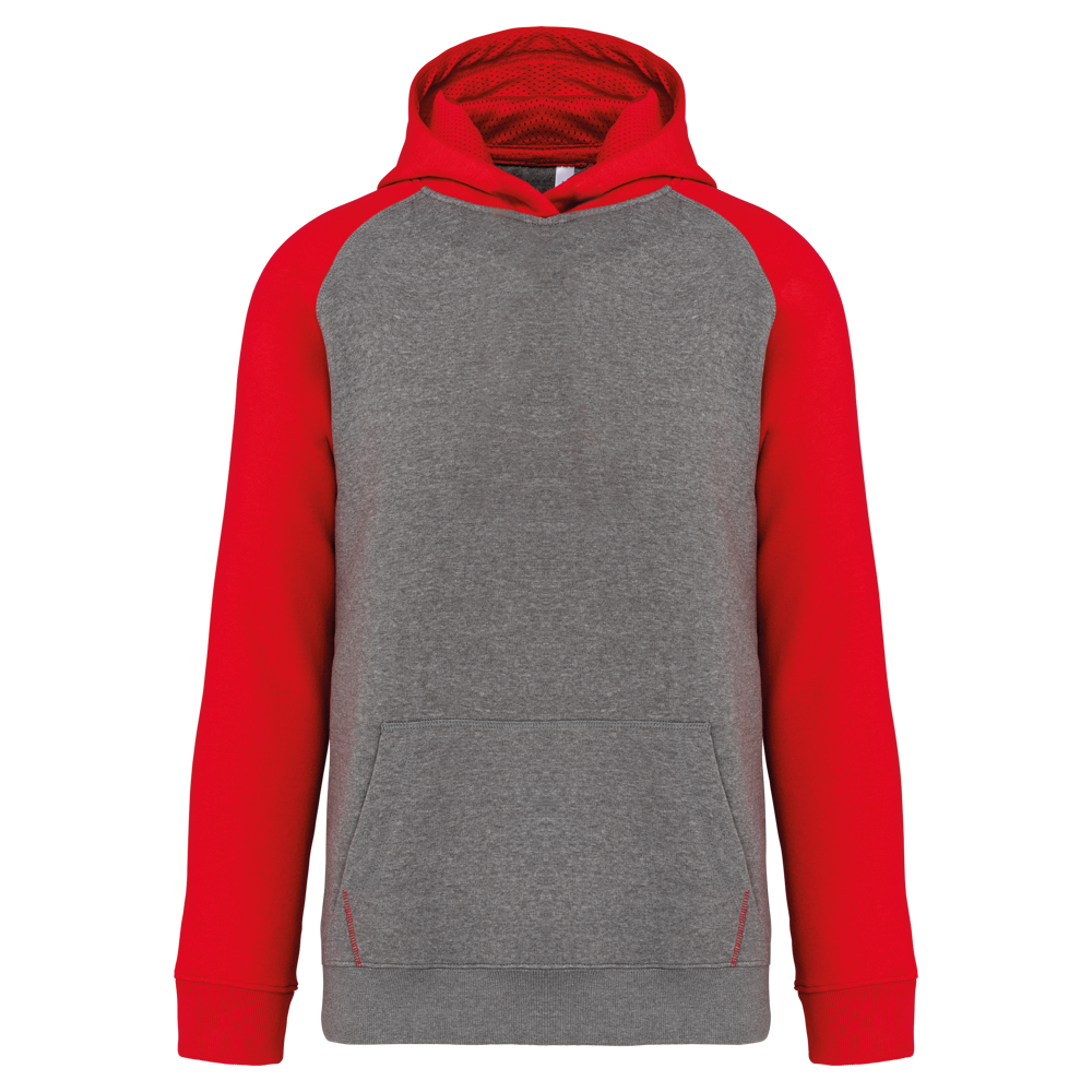 65 % Polyester / 35 % Baumwolle. Gebürstetes Fleece. Kontrastfarbene Raglanärmel und Kapuze. Gefütterte Kapuze aus Ton-in-Ton-Netzstoff. Kängurutaschen mit neonfarbener Handytasche. Kopfhörer-Kabelführung. 2X2 Rippstrickbündchen an den Ärmeln und am unteren Saum.
