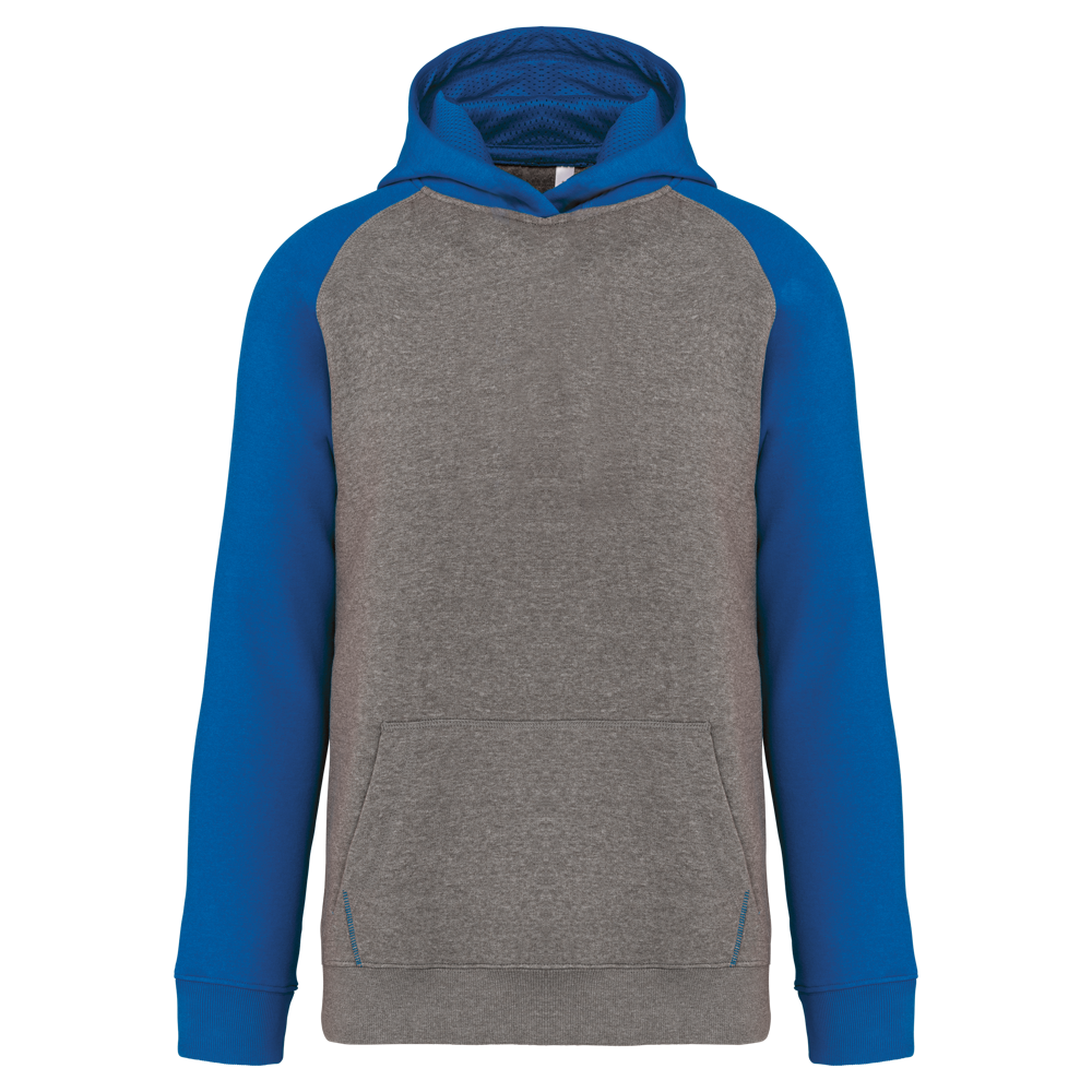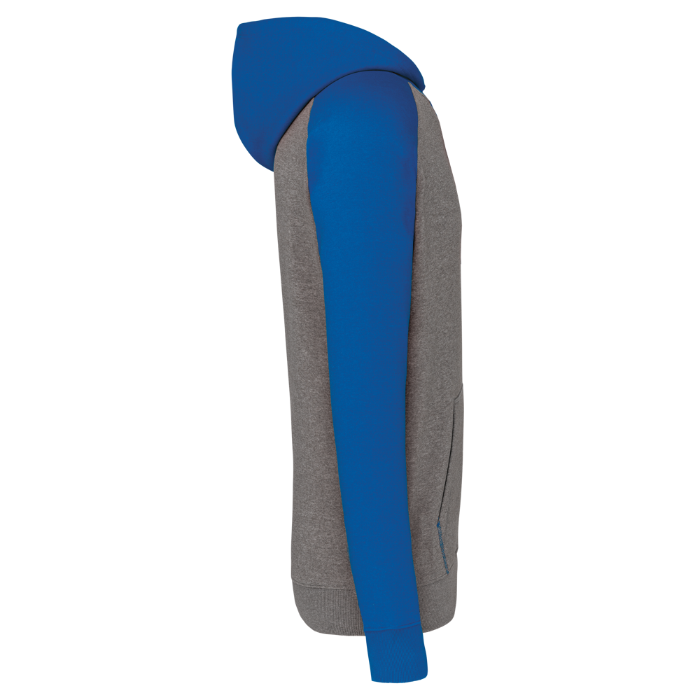 65 % Polyester / 35 % Baumwolle. Gebürstetes Fleece. Kontrastfarbene Raglanärmel und Kapuze. Gefütterte Kapuze aus Ton-in-Ton-Netzstoff. Kängurutaschen mit neonfarbener Handytasche. Kopfhörer-Kabelführung. 2X2 Rippstrickbündchen an den Ärmeln und am unteren Saum.