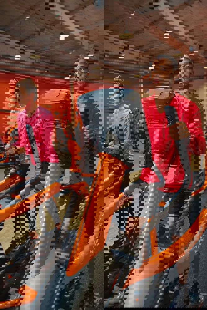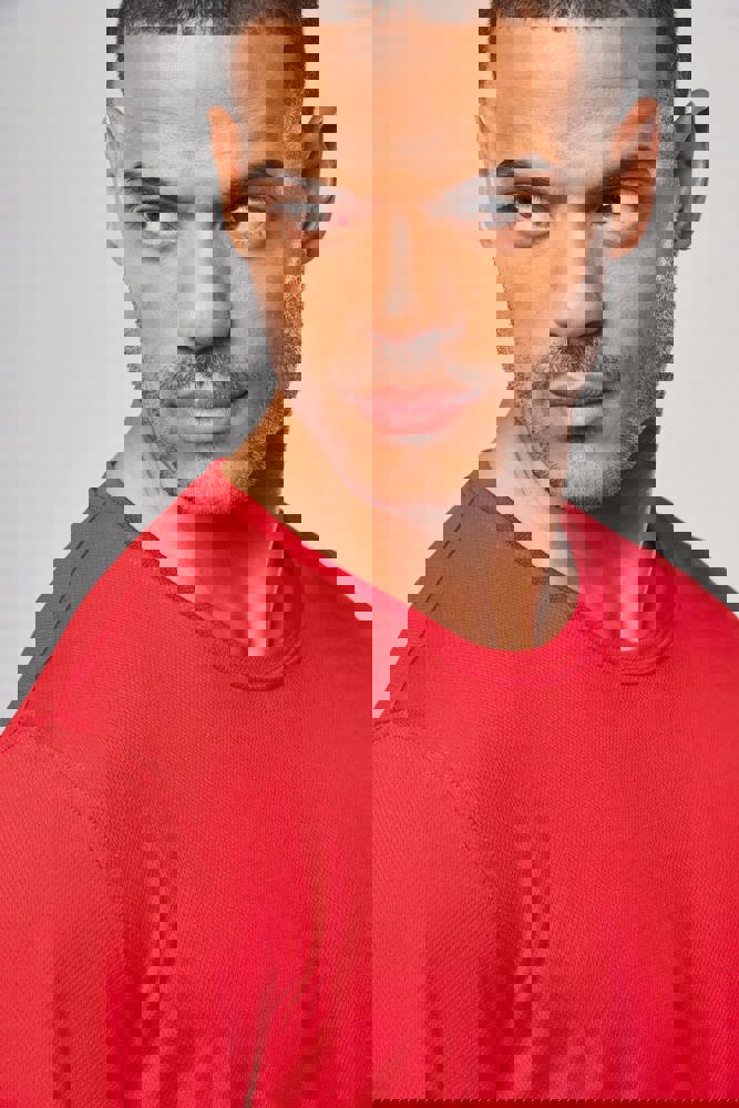 100% Polyester. Leichtes und schnelltrocknendes Gewebe. Nackenband. Doppelnaht an Kragen, Armabschlüssen und Bund.