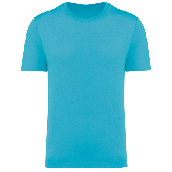 50 % Polyester / 25 % Baumwolle / 25 % Viskose. Jerseystoff. Farblich abgestimmtes Nackenband im Kragen. Doppelnähte an Ärmelbündchen und unterem Saum. Kein Markenetikett am Kragen, nur Größenkennzeichnung, für eine leichtere Veredelung.