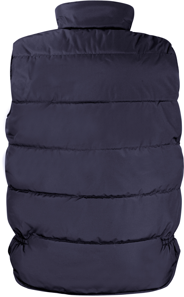 Außen: 100% Polyester (Ripstop) mit Polyvinylchlorid (PVC)-Beschichtung. Wattierung: 180 g/m², 100% Polyester. Innenfutter: 100% Polyester. Winddicht und wasserabweisend. Doppelnähte. Stehkragen. Quergesteppter Body. Weiter Armausschnitt mit elastischem Bündchen. Verdeckter Zip mit Windschutzleiste und Druckknöpfen. Aufgesetzte Handytasche, 3 Zip-Taschen, Seitentaschen mit Klettverschluss und Eingriff, Innentasche. Längerer Rückenteil. Veredelungszugang: unterer Rücken und linke Brustseite.
