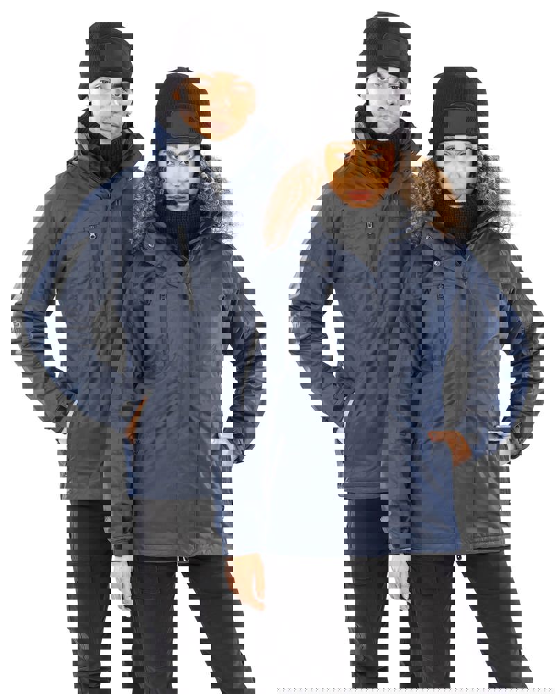 Außenjacke: 100% Ripstop-Polyester, gefüttert mit 100% Polyester-Fleece. Winddicht, wasserdicht 3000 mm und atmungsaktiv 3.000g/m²/24h. Geklebte Nähte. Innenjacke: 100% Softshell-Polyester, 2 Lagen (280g/m²). Durch Reißverschluss-System mit der Außenjacke verbunden. Außenjacke: 2-Wege-Reißverschluss. Doppelte Windschutzleiste mit Druckknopfleiste. 2 Seitentaschen und 1 Brusttasche mit Reißverschluss. Elastische Ärmelbündchen mit Klettverschluss. Abnehmbare gefütterte Kapuze mit verstellbarem, retroreflektierendem Detail auf der Oberseite. Verstellbarer Saum mit Kordelzug. Krageninnenseite in Rippstrick. Innenjacke Softshell: Reißverschluss über die gesamte Länge. 2 Seitentaschen und 1 Innentasche. Ärmel gesäumt.
