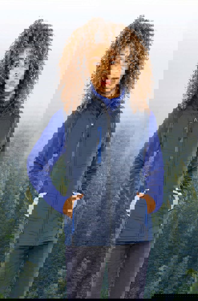 Körperbereich: Außenmaterial: 100% JIAREN recyceltes Polyester 180g/m² Polyester Innenfutter: 100% Polyester. Durchgehender Reißverschluss vorne mit Kinnschutz. Gepolsterter Stehkragen. Kontrastfarbene Details an Brust-und Seitentaschen mit schwarze mReißverschlussschieber. Wattierter, gesteppter Körperbereich. Eingefasste, weiche Bündchen. Sehr weich, leicht und warm. Veredelungszugang: verdeckter Reißverschluss im Brustbereich links.
