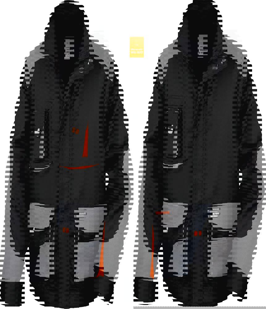 80% Polyester 20% Baumwoll-Twill. Durchgehender Reißverschluss und Windschutzleiste mit Druckknöpfen. Stehkragen. Multifunktionstaschen mit Patte und Klettverschluss sowie einer kleinen reflektierenden Lasche in Kontrastfarbe. Teilweise elastischer Bund. Ärmelbündchen mit Druckknöpfen.Verstärkte Nähte an beanspruchten Stellen. D-Ring. Großzügige Passform. Wasserdichtigkeit bis zu 12 Wäschen. Innen angebrachtes Etikett zur persönlichen Kontrolle der Anzahl der Waschgänge.
