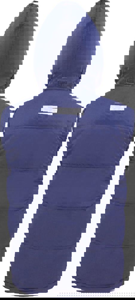 Außen: 100% Polyester. Isolierung: 240 g/qm, 100% Polyester (handgefüllte Wattierung). Futter: 100% Polyester (Fleece). Winddicht und wasserabweisend. Kapuze im Kragen. Quergesteppter Body. 2 Seitentaschen und Brusttasche. 3M™-Sicherheitsreflektor auf Vorder- und Rückseite. Druckerzugang.