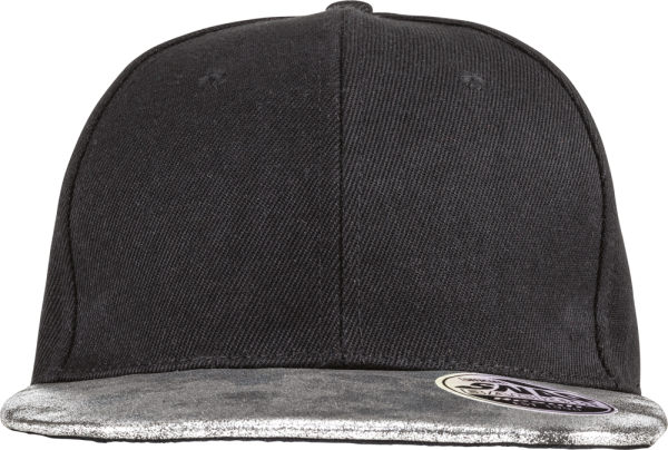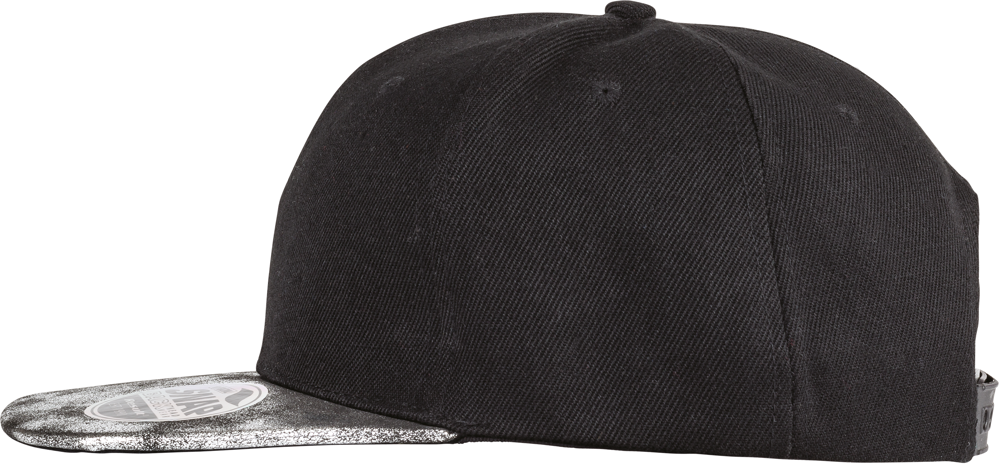 100 % Acryl-Serge. 6-Panel-Snapback-Kappe. Kontrastfarbener, flacher Schirm aus recycletem PU mit Perlmutteffekt. Gestickte Ösen. Verstärkte Frontpanel. Snapback-Lasche zur Weiteregulierung. Abtrennbares Etikett. Geeignet für Stick und Transferdruck.
