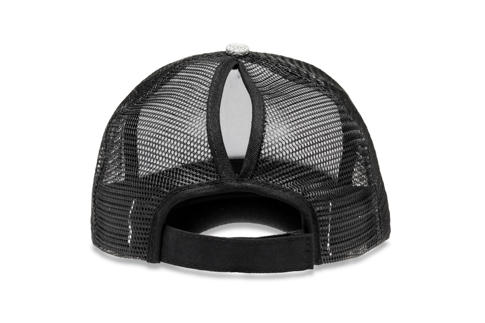 100 % Polyester mit 100 % Baumwolle unter dem Sonnenschutz-Visor. 5 Panels: 4 aus Netzgewebe und 1 aus Stoff. Verstärktes Frontpaneel. Größenverstellbar durch Klettverschluss. Abgerundeter Sonnenschutz-Visor aus Stoff. Öffnung auf der Rückseite für Pferdeschwanz.