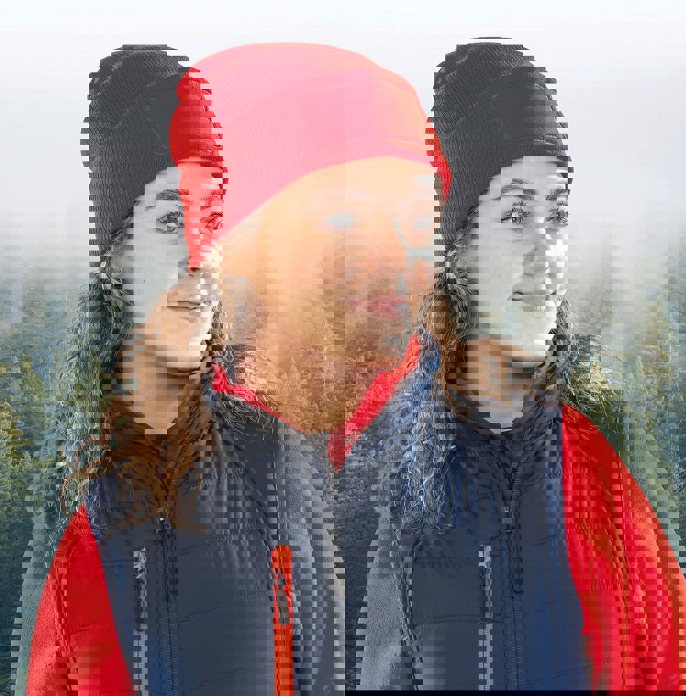 50 % recyceltes Polyester/50 % Polyacryl. Patch aus 100 % Baumwolle zur Veredelung. Nachhaltiges, hochwertiges Garn. Hergestellt aus recycelten PET-Kunststoffflaschen. Schnelltrocknend (Quick Dry). Mütze mit umgeschlagenem Saum. Zweifache Dicke. 3M Thinsulate-Futter.