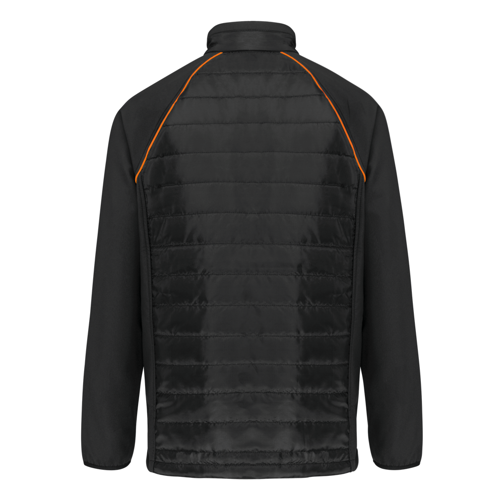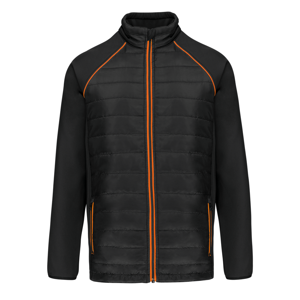 100 % Polyester. Zweilagige Softshell, 4-Wege-Stretch für mehr Tragekomfort mit Fleecefutter an Ärmeln und Schultern für optimale Wärme. Vorderseite und Rücken : 100 % Polyester, 75 g Taft 230T mit Beschichtung. Stoff mit wasserabweisender Behandlung. 2 Reißverschlusstaschen auf der Vorderseite. 1 Namensschild innen links. Kontrastfarbene Paspel an Ärmelbündchen und auf der Krageninnenseite. Reißverschluss auf der Vorderseite und kontrastfarbene Taschen. Unsichtbarer Reißverschluss zur Veredelung am Saum. Ideal für eine tägliche Nutzung.
