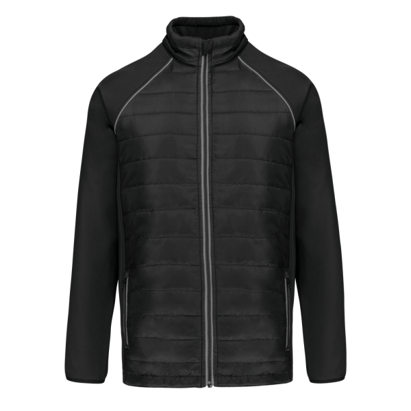 100 % Polyester. Zweilagige Softshell, 4-Wege-Stretch für mehr Tragekomfort mit Fleecefutter an Ärmeln und Schultern für optimale Wärme. Vorderseite und Rücken : 100 % Polyester, 75 g Taft 230T mit Beschichtung. Stoff mit wasserabweisender Behandlung. 2 Reißverschlusstaschen auf der Vorderseite. 1 Namensschild innen links. Kontrastfarbene Paspel an Ärmelbündchen und auf der Krageninnenseite. Reißverschluss auf der Vorderseite und kontrastfarbene Taschen. Unsichtbarer Reißverschluss zur Veredelung am Saum. Ideal für eine tägliche Nutzung.