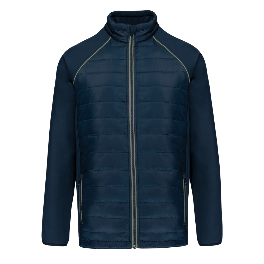 100 % Polyester. Zweilagige Softshell, 4-Wege-Stretch für mehr Tragekomfort mit Fleecefutter an Ärmeln und Schultern für optimale Wärme. Vorderseite und Rücken : 100 % Polyester, 75 g Taft 230T mit Beschichtung. Stoff mit wasserabweisender Behandlung. 2 Reißverschlusstaschen auf der Vorderseite. 1 Namensschild innen links. Kontrastfarbene Paspel an Ärmelbündchen und auf der Krageninnenseite. Reißverschluss auf der Vorderseite und kontrastfarbene Taschen. Unsichtbarer Reißverschluss zur Veredelung am Saum. Ideal für eine tägliche Nutzung.